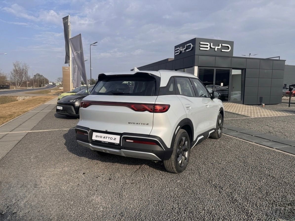 BYD Atto 2 DM-i to nowoczesny, kompaktowy SUV typu plug-in hybrid, który łączy zalety jazdy elektrycznej z dużym zasięgiem i brakiem „range anxiety”. Dzięki technologii Super Hybrid DM-i oferuje cichą i płynną jazdę w trybie elektrycznym na co dzień, a jednocześnie pozwala pokonać nawet około 1000 km na jednym ładowaniu i tankowaniu. Model wyróżnia się funkcjonalnym wnętrzem, nowoczesnymi systemami multimedialnymi oraz wysokim poziomem komfortu i bezpieczeństwa, co czyni go uniwersalnym wyborem zarówno do miasta, jak i w dłuższe trasy.